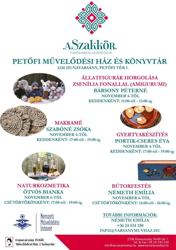 Novembertől ingyenes kézműves szakkörökkel bővül a dunavarsányi Petőfi Művelődési Ház és Könyvtár kínálata.