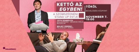 November 7-én, csütörtökön 19 órakor a Tököli Művelődési Központban a Dumaszínház előadása várja a közönséget. A „Kettő az egyben” című esten két humorista, Tóth Szabolcs és Bálint Ferenc lép színpadra. A fellépők önálló műsorral készülnek: Tóth Szabolcs „Boldogság – akarok róla beszélni”, míg Bálint Ferenc „Feleséget keres” című előadását hallhatják, láthatják az érdeklődők. Az esemény a könnyed szórakozás kedvelőinek szól, akik egy estére a stand up világába pillanthatnak be.